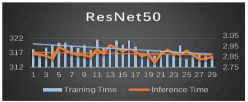 图3:使用ResNet50神经网络时的训练时间表现和推理时间复杂度