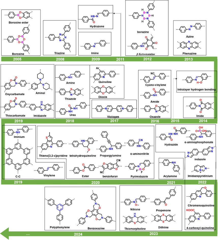 共价有机框架是一类由有机单元顺利获得共价键连接形成的晶态多孔材料,因其高度可设计的有序结构、大比表面积和可调的物理化学性质,在能源催化领域展现出巨大的应用潜力。该类催化新材料的结构和电子特性主要由连接键化学(Linkage Chemistry)决定,进而影响比表面积、结晶度、亲疏水性、化学稳定性以及光电行为等关键属性和其在能源转换系统中的催化性能。对连接键化学进行系统探索,可为催化新材料的设计与应用给予理论指导,从而有助于能源与环境保护技术的开展。