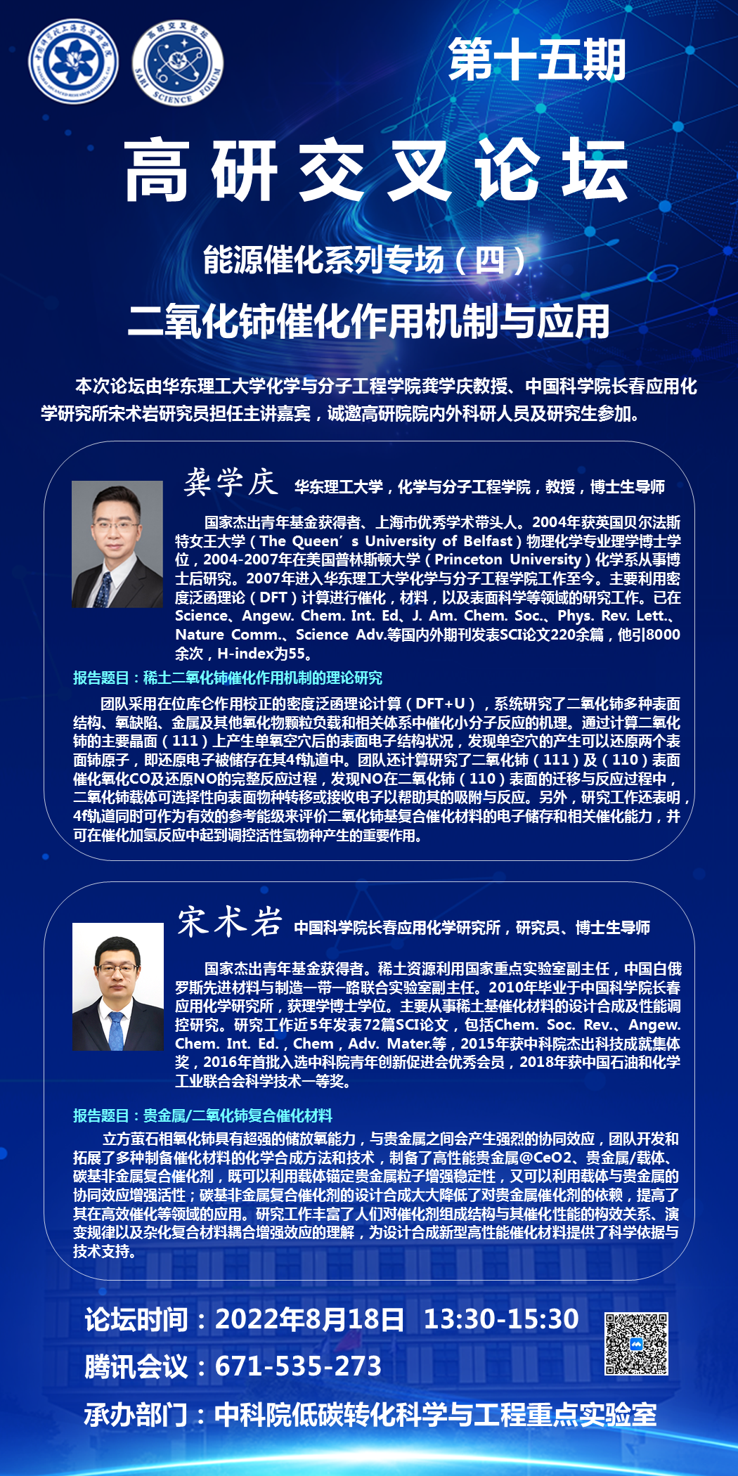 论坛邀请-第十五期“高研交叉论坛”之能源催化系列专场(四)