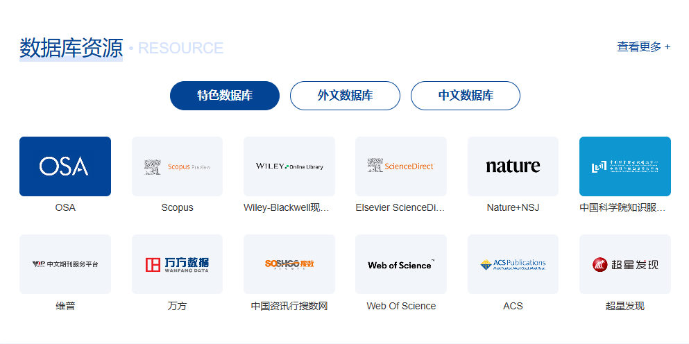 下拉“文献资源与服务”主页,可发现各数据库的快捷入口,在内网环境下,可以顺利获得中国科技云通行证(中国科研实验室邮箱)认证登录(院外需登录VPN)。